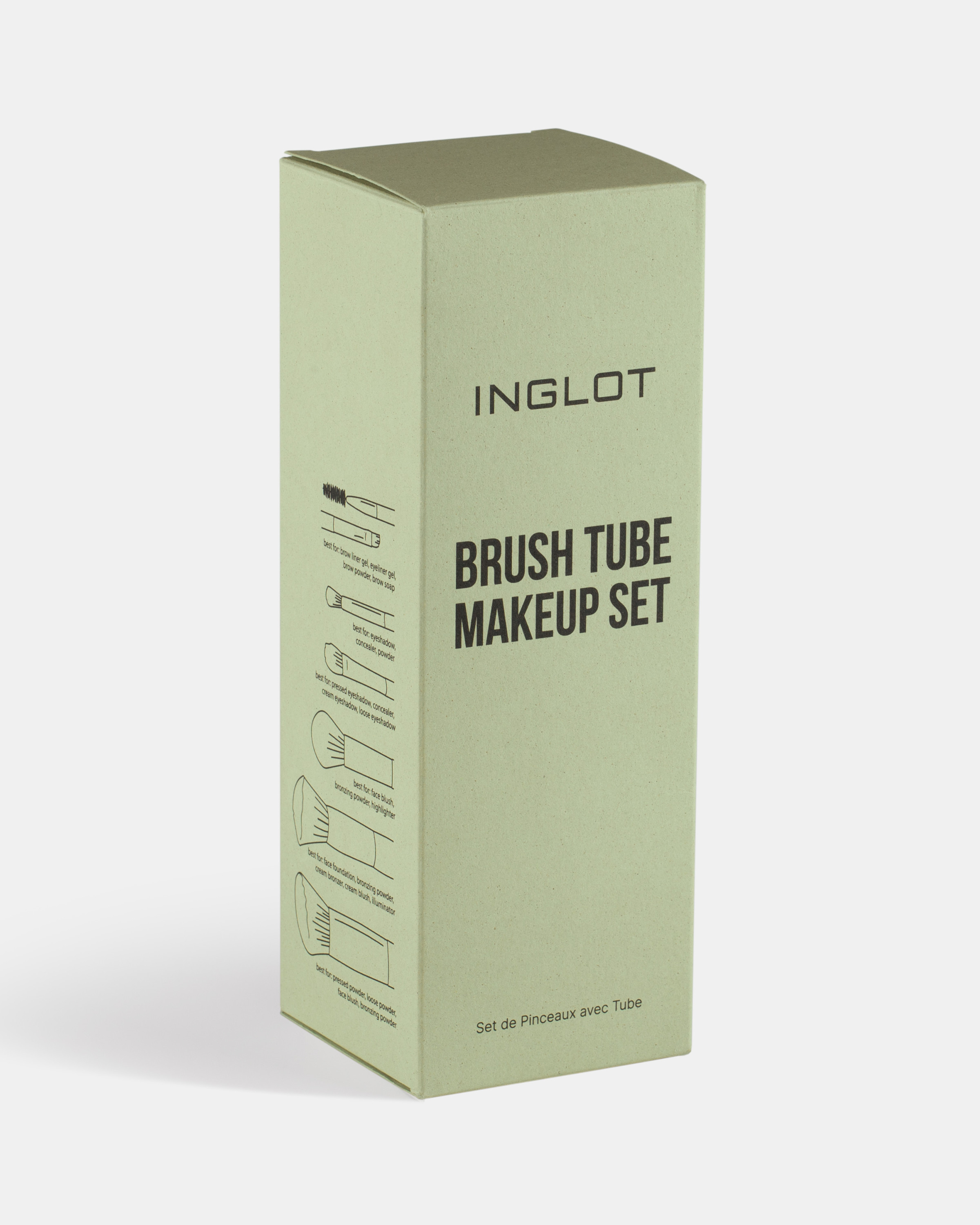 Ein Set synthetischer Make-up-Pinsel, mit denen Sie einen kompletten Look kreieren können. Die subtile Kombination aus weichen Borsten, einem Holzgriff und einer grünen Schelle macht jeden Pinsel nicht nur bequem und einfach zum Auftragen des Make-ups, sondern sieht auch in einer eleganten grünen Tube, die mit zwei Druckknöpfen verschlossen wird, großartig aus. Perfekt für den täglichen Gebrauch und unterwegs, kann es das perfekte Geschenk für Sie und Ihre Lieben werden.